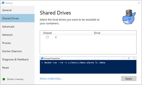 tl;dr Docker for Windows の Settings... に Shared Drives という設定があったので触ってみた。 どうやらホスト OS のドライブ(フォルダ)を Docker のボリュームオプションを使ってマウントする為の設定らしい。 メモ Shared Drives を有効にする コンテ…