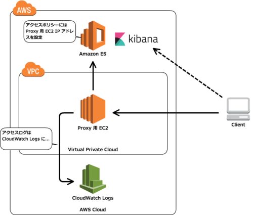 tl;dr やったこと 構成イメージ プロキシ用 EC2 の作成 Amazon ES の作成 EC2 への Nginx インストールと設定 CloudWatch Logs Agent のセットアップ Kibana へのアクセス アクセスログ 以上 感想 メリ 出目 解決出来ていない課題 tl;dr Amazon ES の Kibana…
